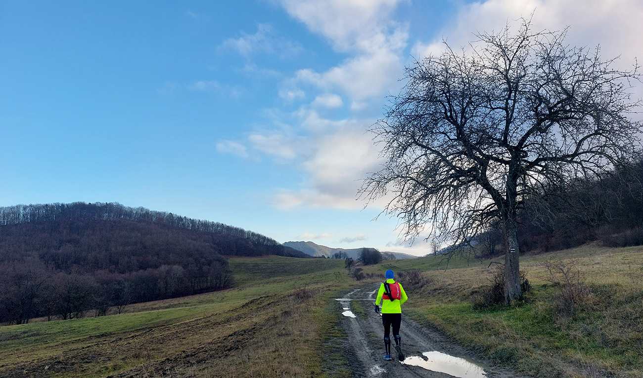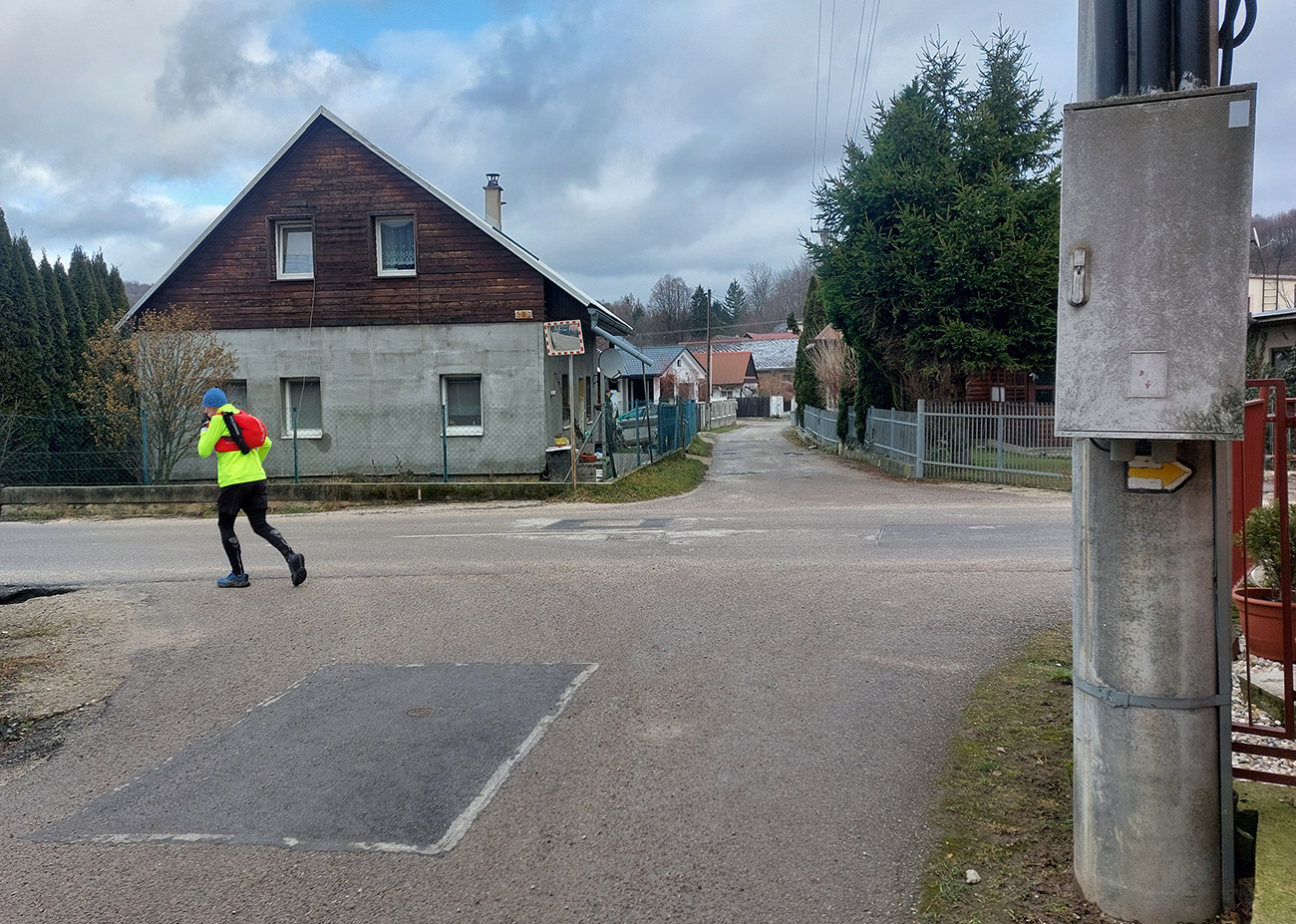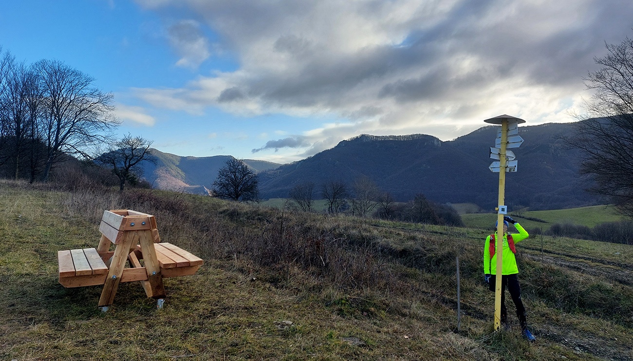 Záver už bol pohodový – aj slnko zas vyšlo, aj blata ubudlo, po východe z lesa sa pred nami otvorili široké rozhľady na Považie. Tak už len oklepať čo najviac podrážky a preasfaltovať sa cez jednu z najväčších našich dedín na vlakovú zastávku (tá je naopak jedna z najmenších, ktovie prečo). Tam sme debordelizáciu viac-menej úspešne dokončili, lebo nik nás potom z vlaku nevyhadzoval, a bolo po podarenom výkluse. No, nech je takých aj v budúcom roku čo najviac. A aby som nezabudol, treba mi poďakovať parťákovi za pózovanie, spoluúčasť a čaj v cieli :-)