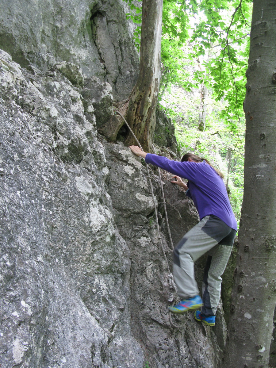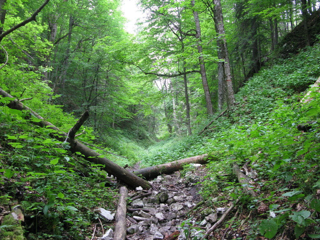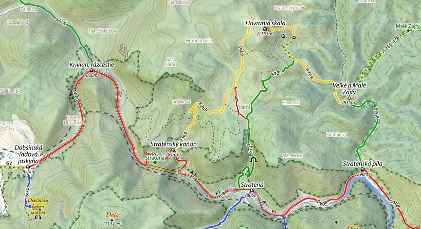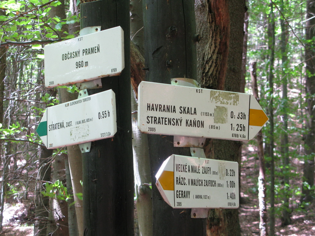 Parkujeme v obci Stratená (800m), kde panuje ešte pred hlavnou letnou sezónou veľký kľud. Priamo z obce popri kostole vyráža do kaňonu pod Sokolími skalami zelená značka. Prechádzame popri cintoríne a vnárame sa do lesa. V kaňone ostro stúpame a prechádzame popri malých jaskynkách, a dokonca sme našli aj skalné okno.
