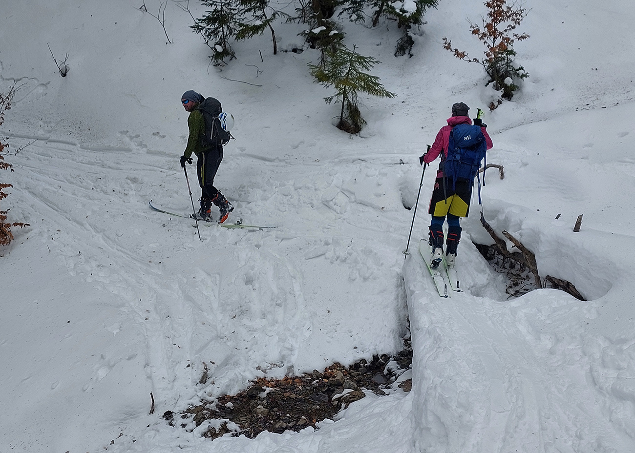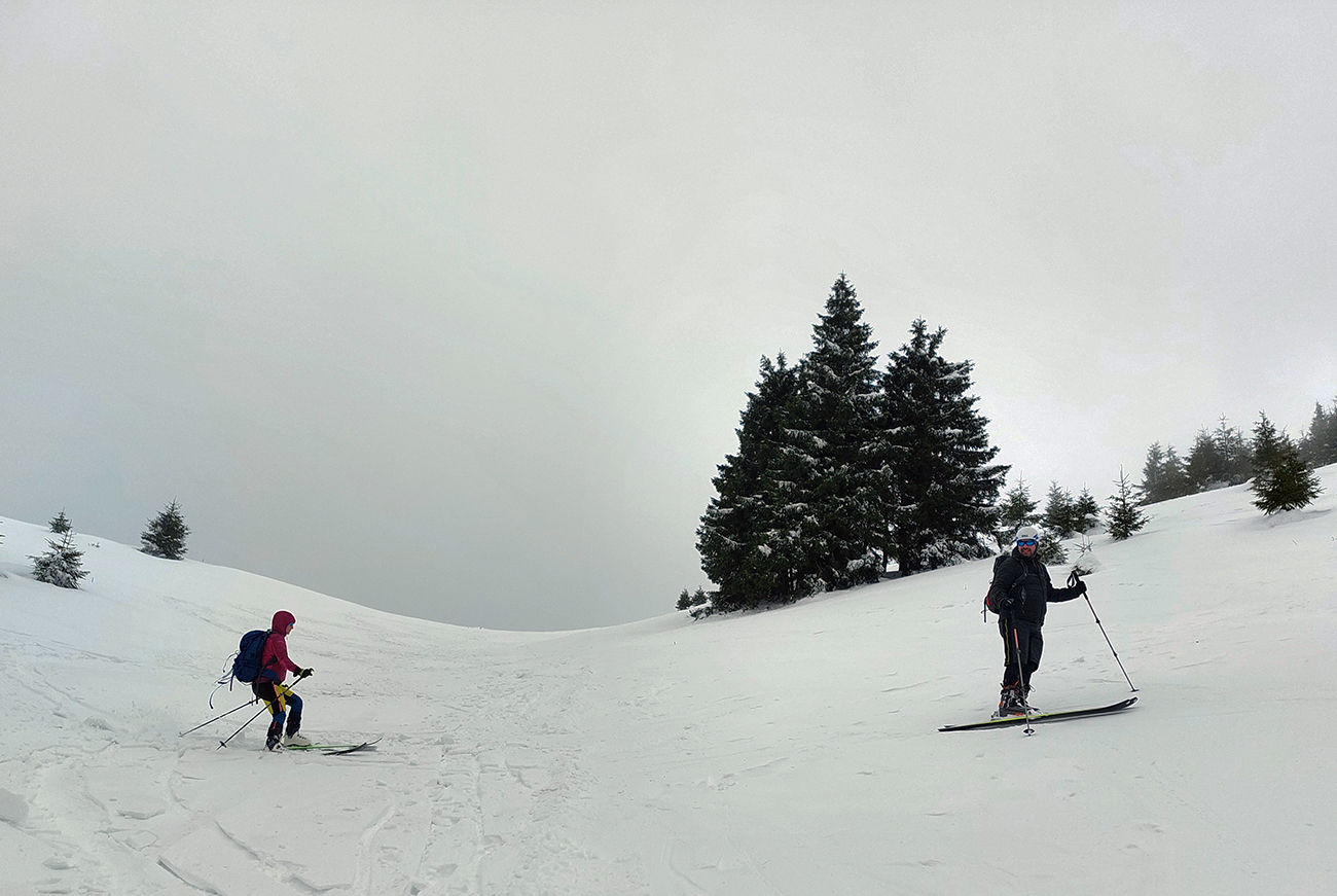Na Skalnej Alpe vylízaný traverz až do ľadu, popri tyčiach ale aj trochu prachu a stopy relatívne komfortné. Vyhliadka na pomaly sa mračiace vrcholky Malej Fatry, zošup dole do jamy škrípavo-hrkotavý, so striedaním tvrdosti povrchov a trčiacimi kríkmi. Nižšie ale aj pár práškových oblúkov pre efekt sa zadarilo.