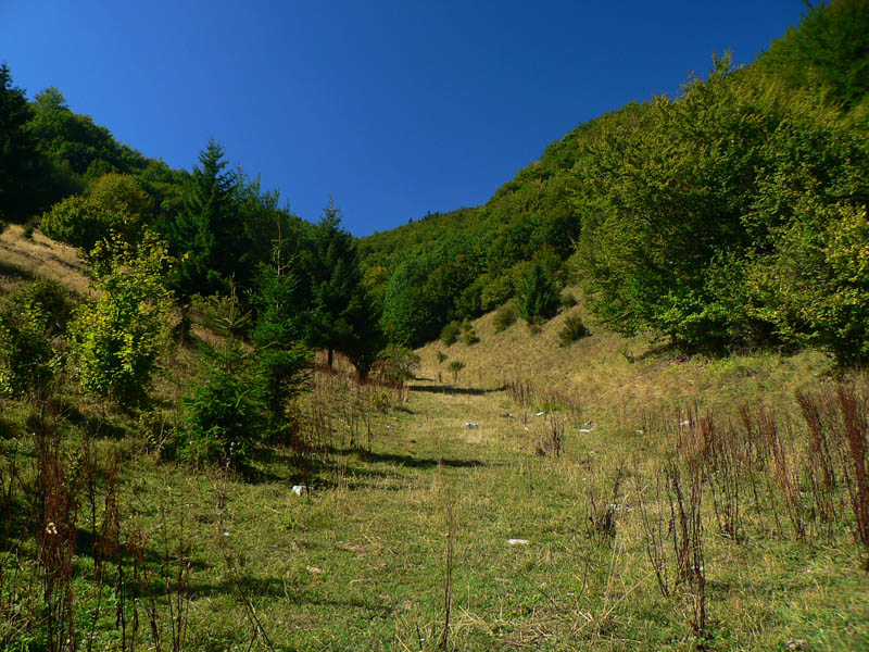 Zo Štefanovej je to „hore“ najskôr prudšie, potom miernejšie lesom do sedla Medziholie. Tak na hodinku a pol, jeden z najfrekventovanejších chodníkov vo Vrátnej. Nakoniec ešte krátky prudší úsek z Medziholia na Osnicu – tam už naopak nechodí skoro nik. Odtiaľ je to už len „dole“. Aj keď v prvej tretine je zostup spestrený niekoľkými krátkymi stupáčikmi. Do sedla Strungový príslop je to poriadne strmý zošup, potom tie hupáčiky okolo Magury a keď sa človek vynorí z lesa na zjazdovke, odtiaľ je to už len dlhééé a čoraz menej strmé klesanie, prevažne lúkami. Prevažne na východ, v ústrety vzdialenejšiemu Choču a bližšiemu Šípu. Ten sa odtiaľto na seba vôbec nepodobá :-) Teda na svoju známejšiu skalnatú tvár, viditeľnú z juhu. Vľavo Kubínska hoľa a vzadu Roháče, vpravo v protisvetle Veľká Fatra.
