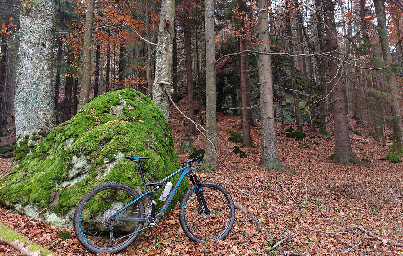 Dušičkový víkend a počasie konečne chvíľu prívetivé – nepršalo už zo tri dni, to je na túto usmoklenú jeseň poriadne dlhá pauza! Ako bola zrušená ostatná zima, tak teraz aj babie leto, že? No aj teplo udrelo na dušičky poriadne, ale zas tie blatá teraz už tak rýchlo neschnú. Tak sa mi nechcelo moc sa zaprasiť. Mal som síce na bajku už dve vrstvy blata, vari ešte zo septembra a októbra, tak že sa nič nestane, ak pribudne aj novembrová, ale zase s mierou! Bicykel v trojobale? Nie, lebo viem, že pod Flochovou v Kremnických vrchoch sú kilometre exkluzívnych lesných ciest, ozaj veľa ich je bielych, šotolinových. Ako na ozajstných pretekoch Strade bianche, ani tu sa nejde stále po šotoline - aj asfalty kadejaké a kameňohlina, samozrejme. A tunajšie strade bianche majú často zelený stredový pruh. Že mám týždenník na vlak, nič ľahšie ako dokúpiť lístok pre bicykel a vyložiť sa na Štubni z Fatrana. A už von z dediny cesta k lomu suchá ako v strede leta. Len keby nohy išli – zriedka už sa na bajk dostanem, tak to potom aj vyzerá, aj som pôvodný zámer trochu skrátil. Ďalej čítať ani netreba, fotonávod je v galérii a tu hore gpx. Takto to celé vyzeralo: