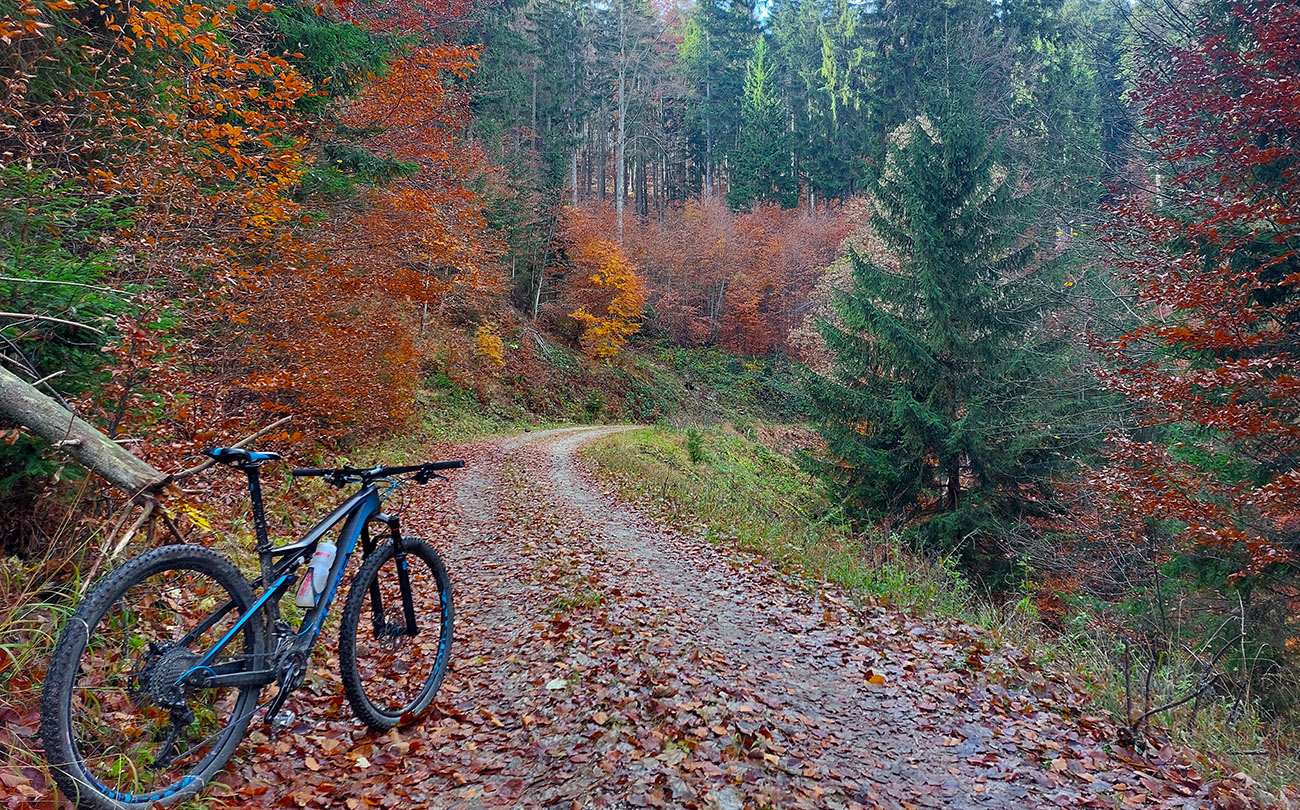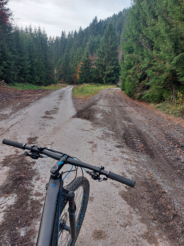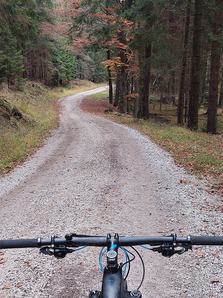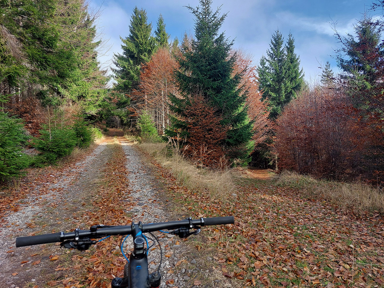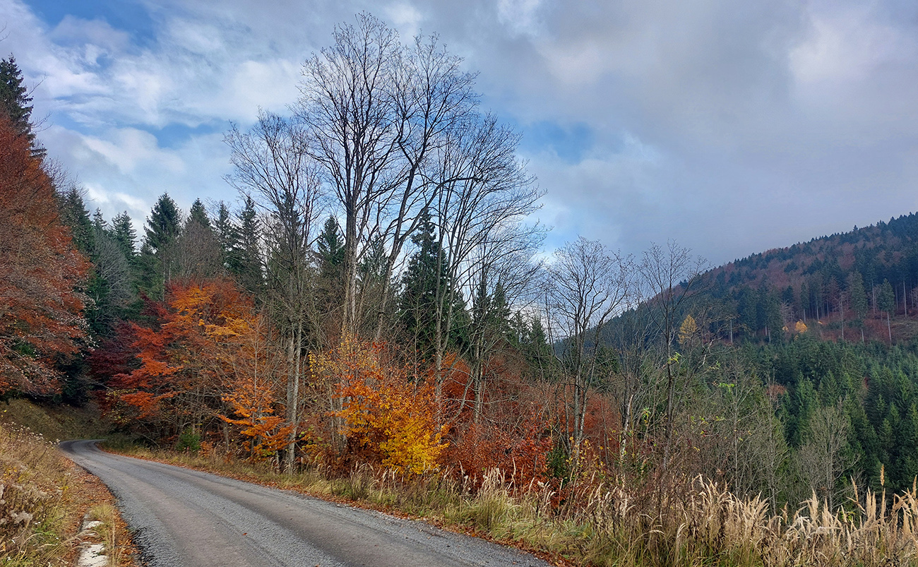 Hneď po vjazde do lesa prvá strada bianca, až po napojenie na asfaltku hore Dolinou Čiernej vody. Pohodofka v miernych sklonoch, blata skoro nič, a ešte občas aj slnko začarovalo farbami. Pomaly som sa posúval na východ za prašťania šotoliny a občasného šuchotu lístia.