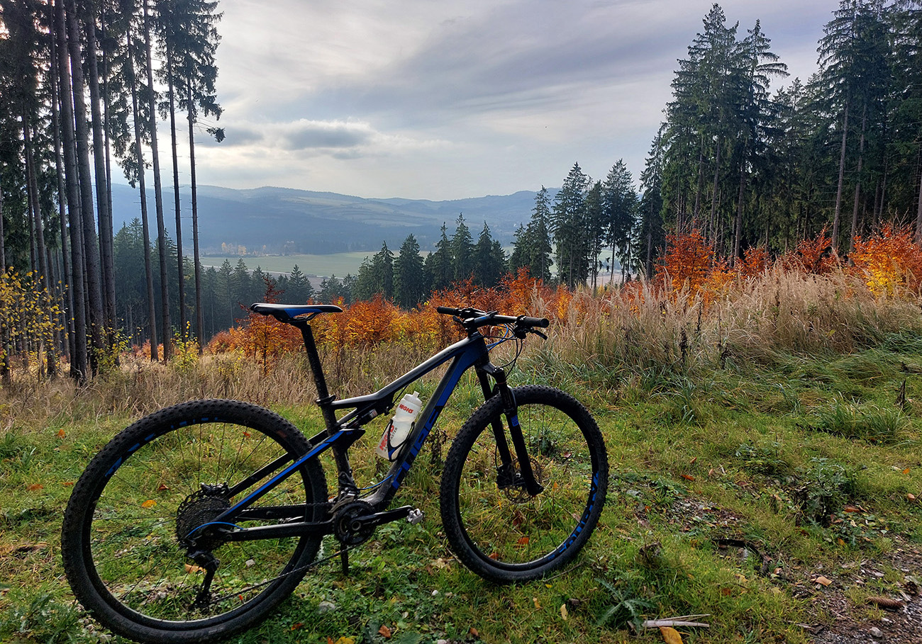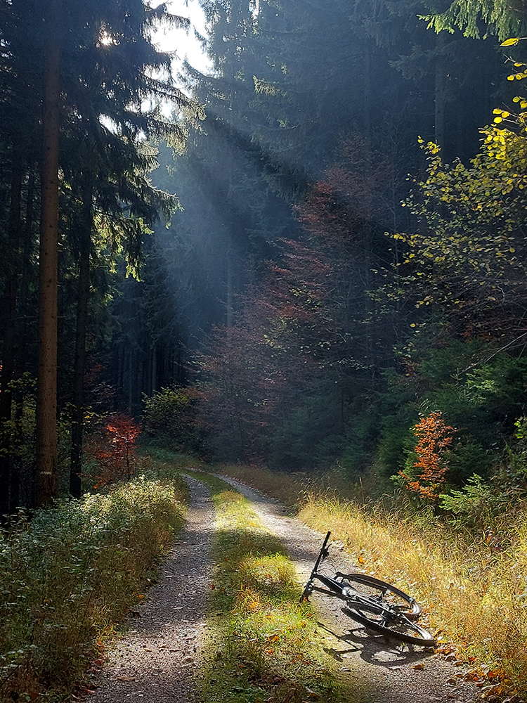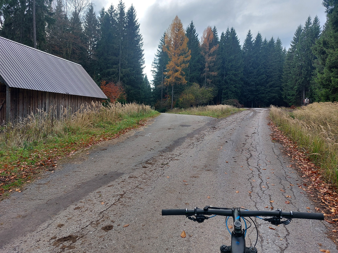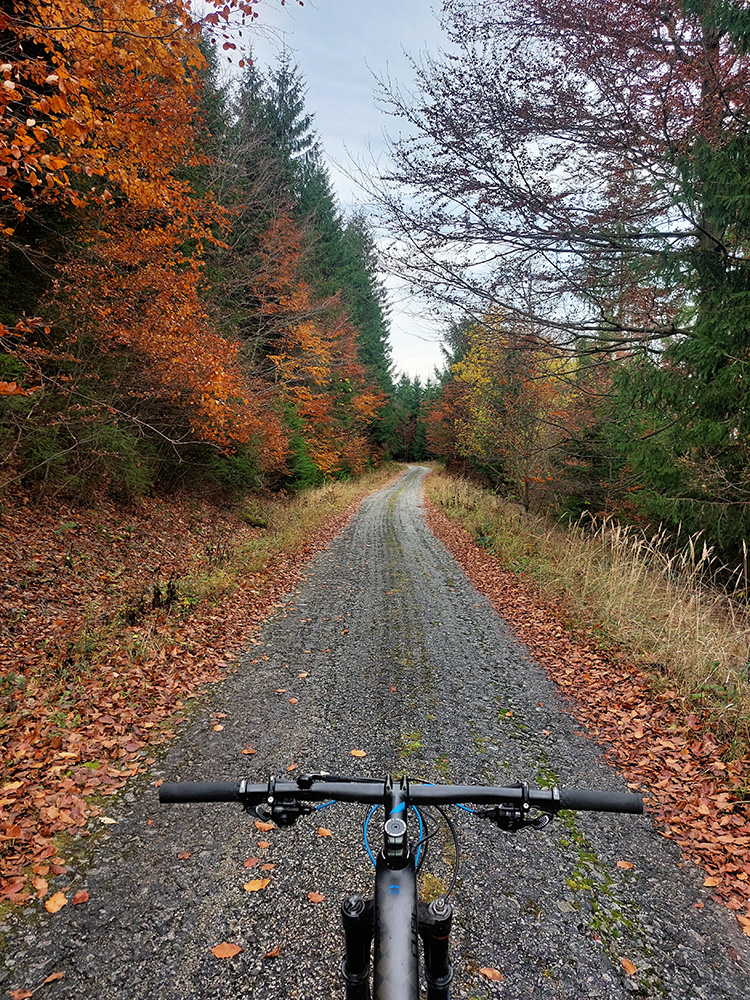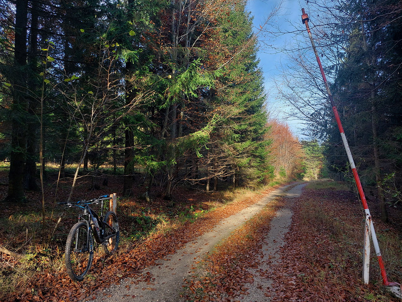 Hneď po vjazde do lesa prvá strada bianca, až po napojenie na asfaltku hore Dolinou Čiernej vody. Pohodofka v miernych sklonoch, blata skoro nič, a ešte občas aj slnko začarovalo farbami. Pomaly som sa posúval na východ za prašťania šotoliny a občasného šuchotu lístia.