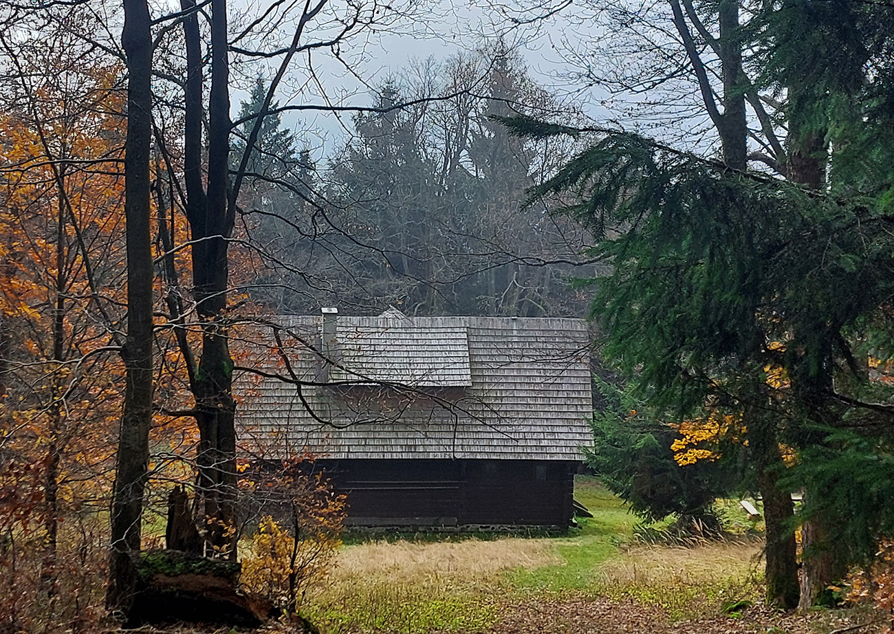 Taaak, Široký peň po tretí raz a naposledy, odbočil som odtiaľ doprava dole, do doliny Ružovej. Po bielom podklade, ako inak. Dole som si tiež dal krátku zachádzku - doľava, hore dolinou potoka Javorovec. Cez pekné lúky s lesníckymi chatami, až kým cesta zo šotoliny neprejde na trávu, pristrmí sa a skončí pri potoku.