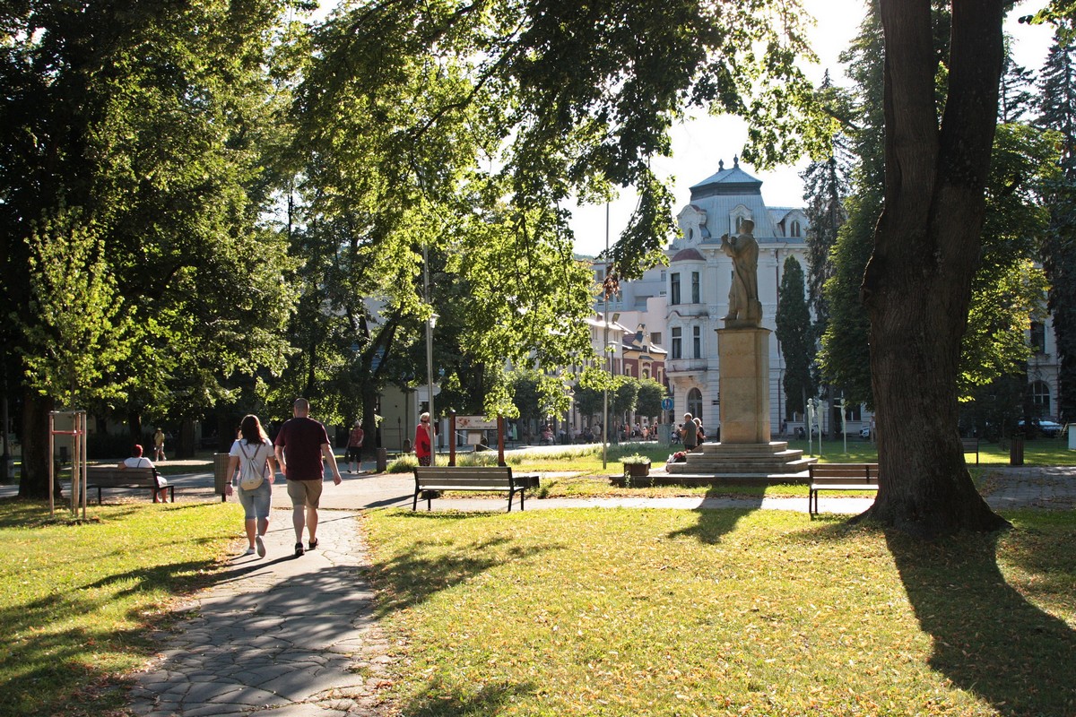 Z Omšenia do Trenčianskych Teplíc je to v lete čisté utrpenie. Slnko páli, asfalt sa lepí na päty, teší snáď len spätný pohľad na Omšenskú babu a predstava schladenia nôh vo vodnej nádrži Baračka. Ani tá sa však nekoná. Pri pohľade na farbu a hustotu vody si radšej nechám zájsť chuť. Duša opäť pookreje až v kúpeľnom parku v Tepliciach. Mesto má svoju neodškriepiteľnú letnú atmosféru a je skvelou civilizačnou bodkou za mojím dnešným programom.