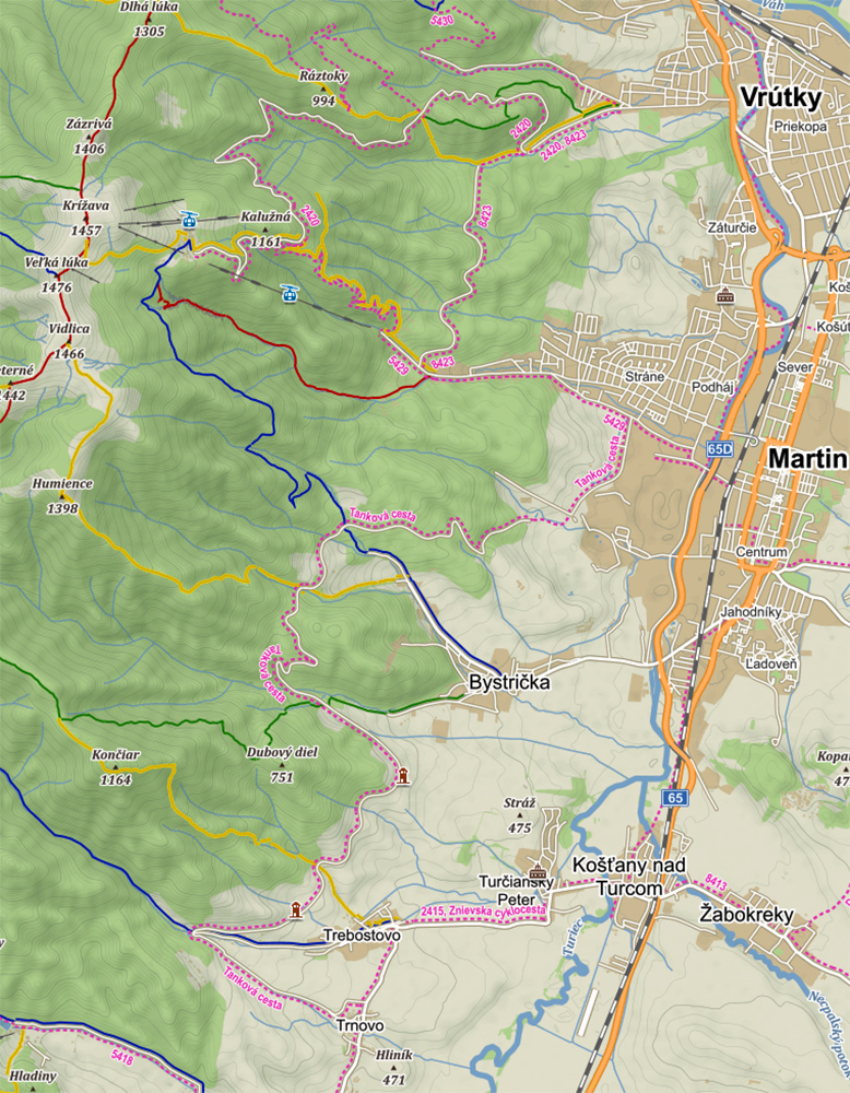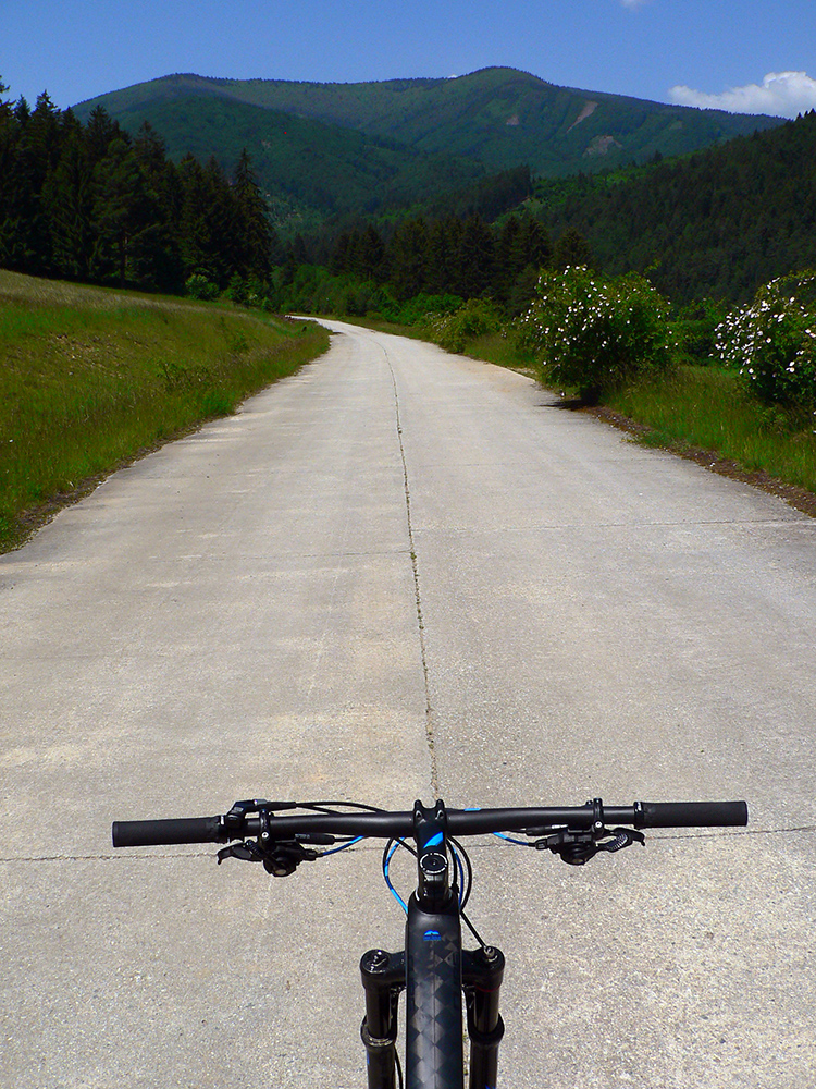 Samozrejme sa dá „nadstaviť“ – od jej konca sa dá zbehnúť po peknej, úzkej, cezpoľnej asfaltke do Trnova (aj pre žiletkárov) alebo naopak hore popri muničáku do Valčianskej doliny a ďalej na juh podhorím. Na jej začiatok sa dá tiež popod lesy doviezť po cyklotrase z Vrútok. Kadejaké odbočky ani nerátam, proste natočiť sa tu dá kilometroooov na mrte. Takých nenáročných, aj detiská sa vybláznia.