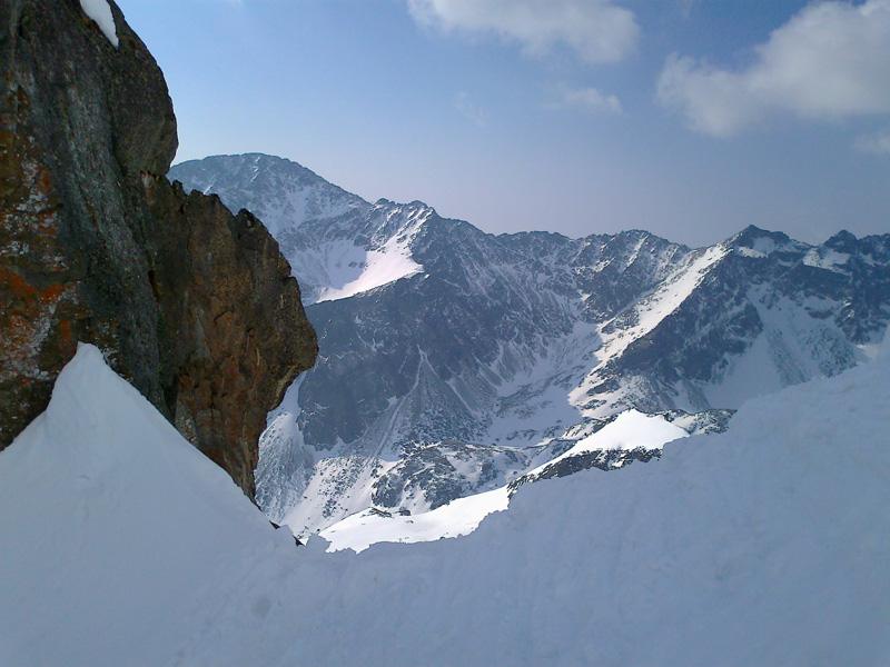 V závere stúpania je dobrá stopa a tak šliapeme bez mačiek. Výhľad zo sedla do Veľkej Studenej doliny otvára nové možnosti. Padá rozhodnutie. Dáme pokus o tatranskú Haute Route. Zamierime na Zbojníčku doplniť zásoby vody a energie. V prázdnej chate si posedíme asi 40 minút. Nikde nikoho, okrem chatára a personálu. Obúvame lyže a presúvame sa: smer Studené sedlo.