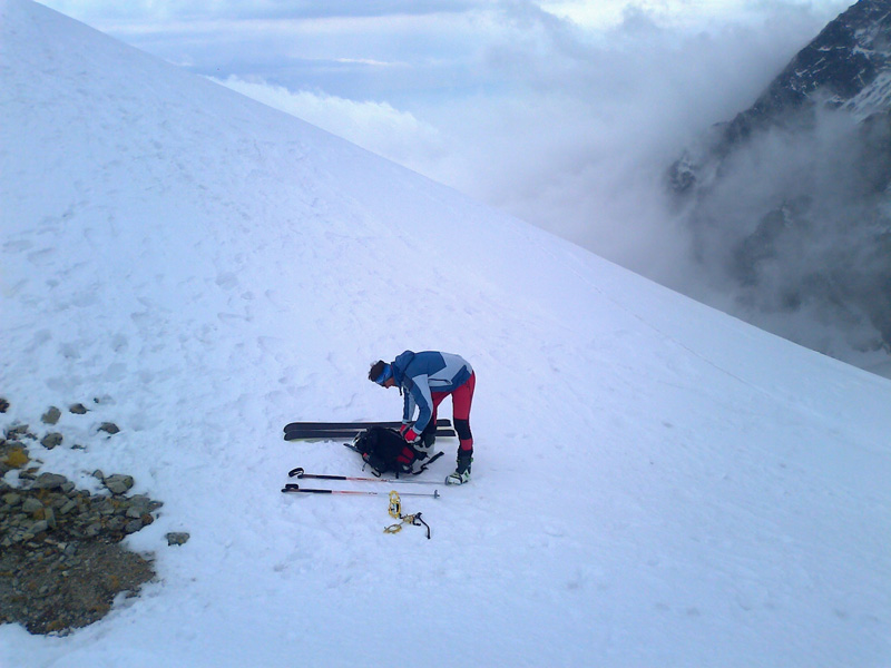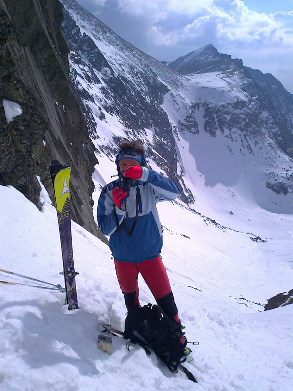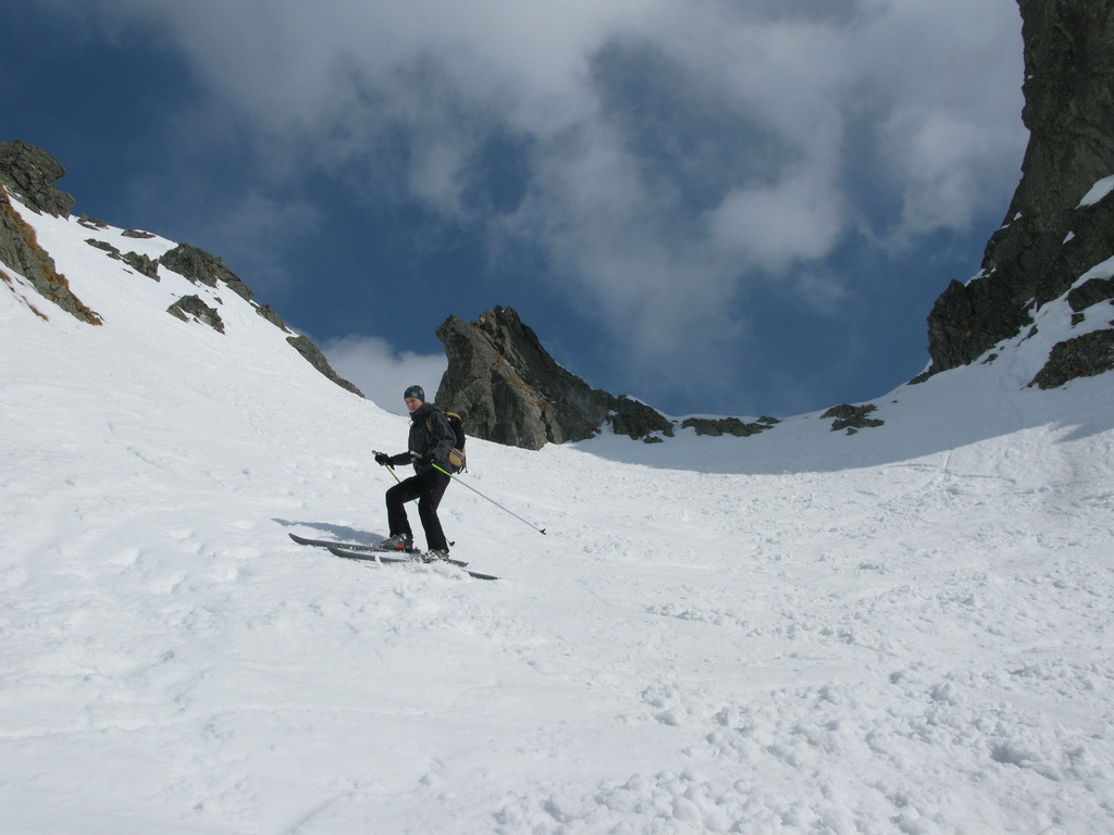Na pásoch stúpame až tesne pod ňu. Modrá obloha v otvore brány je ako vstup do neba. Pár výškových metrov na pešo a sme hore. Prvý sa cez snehový prevej prehupne Maťo a mizne na druhej strane. Nie sú ani dve hodiny a my sme tu. Asi sa mi sníva. Šlo to celkom ľahučko. To čo iní chodia 2 dni, my sme prešli za pár hodín. Toto sedlo je posledným v tatranskej Haute Route. Ale deň ešte nekončí a ani my nie sme unavení, práve naopak. Maťo navrhuje pridať ďalšie sedlo. Prečo nie. Strhávame pásy a lyžujeme ľudoprázdnymi Zlomiskami, smer ďalšie sedlo.