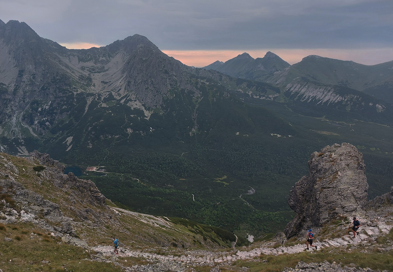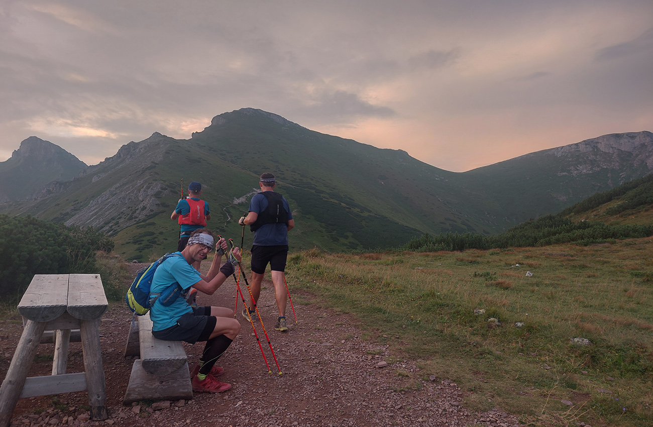 Chlapci sa na úvod dáko bujaro rozbehli po tých čapákoch, skoro som ich nedobehol. Ale potom, tie posledné dve stúpania, to už bolo poriadne za trest, miestne kamzíky sa nám smiali spoza kosovky. Našťastie aspoň tie panorámy a z Kopských sediel aj tie gýčové slnca západy okolo ôsmej to vyrovnali, keď sme sa začali spúšťať do hustnúcej tmy, do Monkovej doliny.