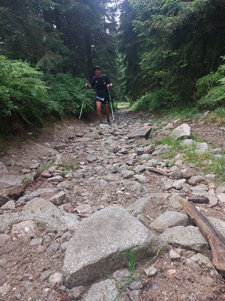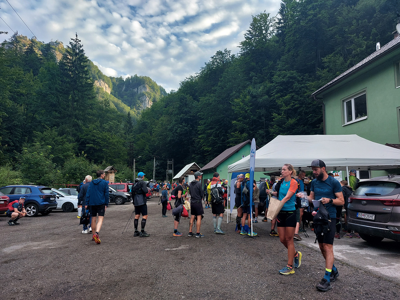 Dokonca ráno v Harmanci to vyzeralo veľmi príjemne: teplota takmer ideál, na nebi modro a biele baránky k tomu. Aj hlavný páchateľ Filip do mikrofónu pred štartom sľuboval, že síce značenie nebude, ale počasie bude. Len kto mu asi tak uveril, že? Keď tri plné autobusy z Ružomberka dorazili, kávovar sa zavaril a prezentácia skončila, o siedmej boli všetci vyhnaní spod štartovej brány do tej sľubovanej zážitkovej divočiny. Tu treba hneď aj upozorniť optimistov, ktorí by aj nabudúce naleteli na tú nezodpovednú reklamu, že poriadna divočina je tu hneď od začiatku: takú strmú štartovú „rovinku“ nemá ani Zázrivá, také prevýšenie ani MF50 (aj keď tam snaha je) a toľko mäsožravého krovia a slizkých šutrov nemá už vôbec žiadne ultra u nás.