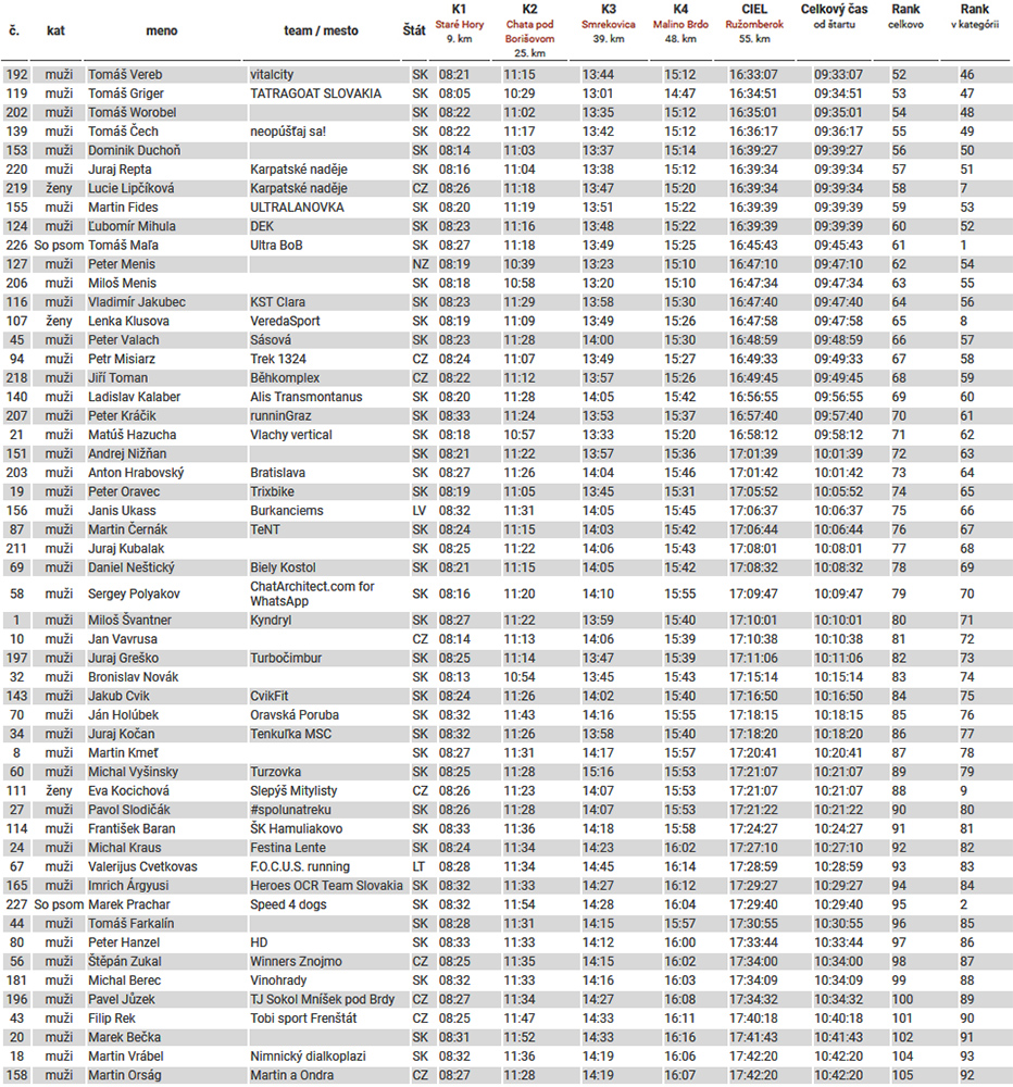 Gratulácia patrí ale všetkým, ktorí prežili nástrahy jedného z najnáročnejších ultrabehov u nás, bez ohľadu na to, že je to len „polstovka“. Výsledky sú dole v galérii a samozrejme na HIKINGU ULTRA . Link na balík fotiek (asi 720 mega) je v komentároch tu dole pod reportom. Páchateľom tohto šialenstva patrí nekonečná vďaka – hádam sa vydarila aj telocvičňová afterka a následné upratovanie. O rok to bude všetko určite ešte lepšie, lebo hlavná organizátorská dvojka sa rozrastie minimálne o jedného člena - tak držme palce a tešme sa!
