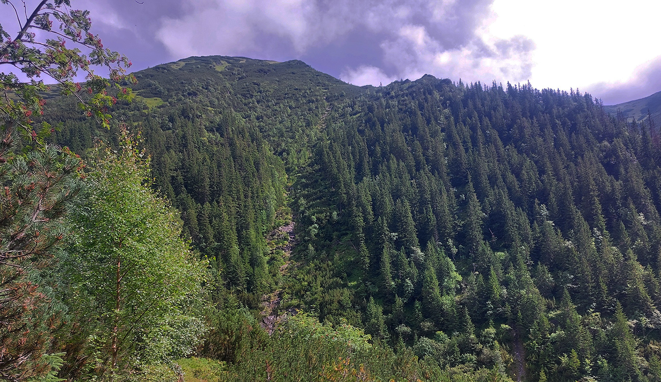 Teda len v tých, ktoré sú turistovi prístupné: Jaloveckej, Bobroveckej, Hlbokej a Parichvoste a ktoré sa pekne z jedného miesta rozvetvujú na západnom okraji TANAPu. Lebo od polovice 20. storočia tam nevedie žiadna cesta, po ktorej by sa do ich vnútra šírili lesohospodárske „výchovné zásahy“. O ich „účinnosti“ v porovnaní s tými prírodnými je viac v skvelej reportáži Andreja Baráta TU - aj v súvislosti s jarným požiarom v Jaloveckej doline. Zatiaľ však len turistické chodníky vedú tade hore na hrebeň. Väčšinou som niektorou z dolín iba prechádzal (odkazy sú dole). Tentokrát som si ich chcel prejsť všetky naraz, smerom hore aj dolu - s tým, že až na hrebeň sa štverať nebudem, že si vychutnám práve len tú dolinovú divočinu. A čakal som na ten správny deň, keď bude hrebeň v mrakoch a vetroch, aby nelákal. Navyše sa vyskytla „miestna sprievodkyňa“, studený front akurát odchádzal, slovo dalo slovo a išlo sa. Takáto (fialová) vidlička z toho vznikla: