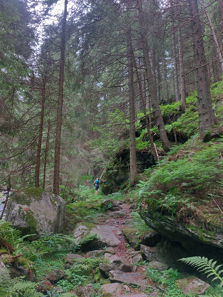 Ďalšia na rade bola teda Hlboká dolina. Samozrejme, najskôr sme sa prepracovali k odbočke do nej, spodnou časťou doliny Parichvost. Asi 30 minút je to medzi rázcestiami, po nádhernom chodníku pomedzi bralá a Jalovčianku, hlavne po pravom brehu.