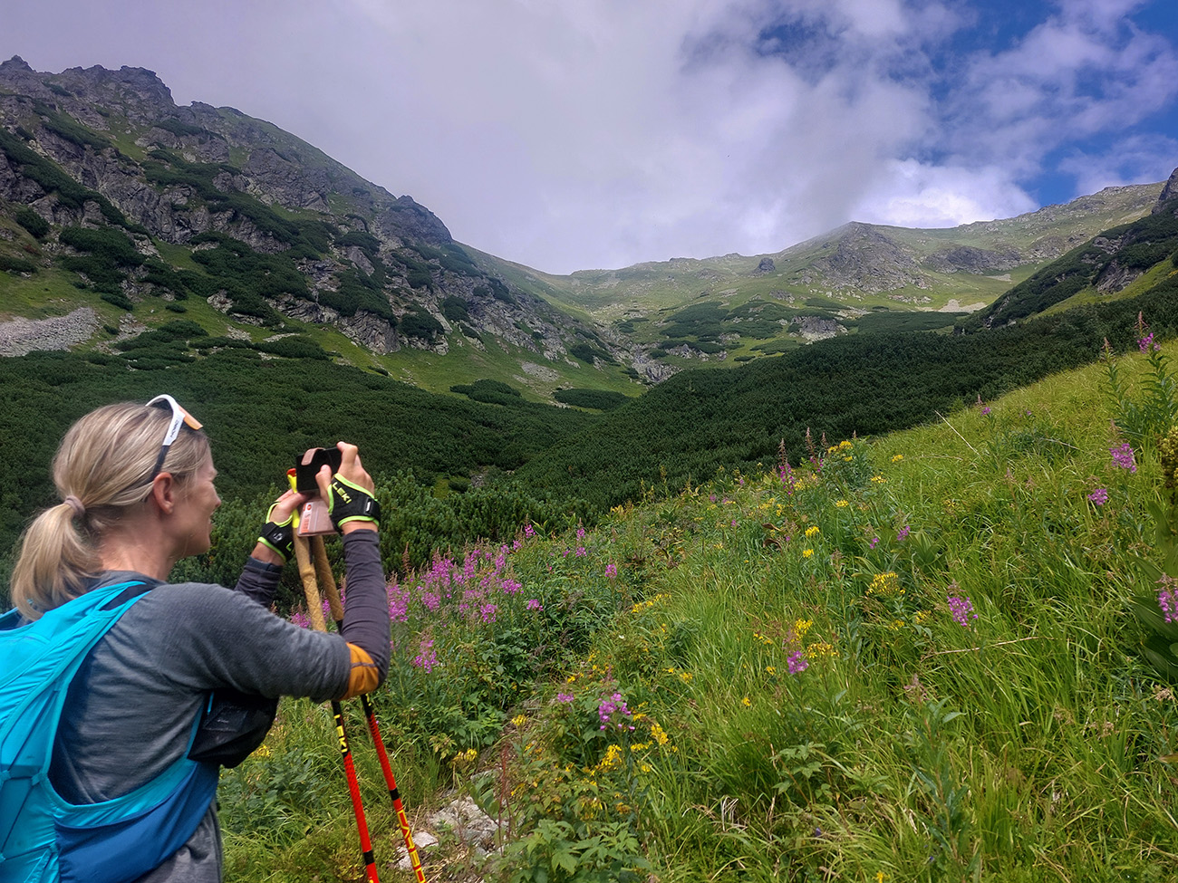Posledné, stále strmšie kľučkovanie kosodrevinou, a je vidieť, že tu to lavíny často „čistia“ – v okolí kvitlo akosi viac vŕbovky ako v susedných dolinách. Aj slnko sa konečne objavilo a vyfarbilo naplno rozkvitnutú paletu horských lúk, aj bralá pod Pachoľaťom zvýraznilo. Tam niekde na ich úrovni sme to otočili a v ústí Jaloveckej sme boli asi za hodinku, „zrýchleným presunom“ – čas už trochu tlačil.