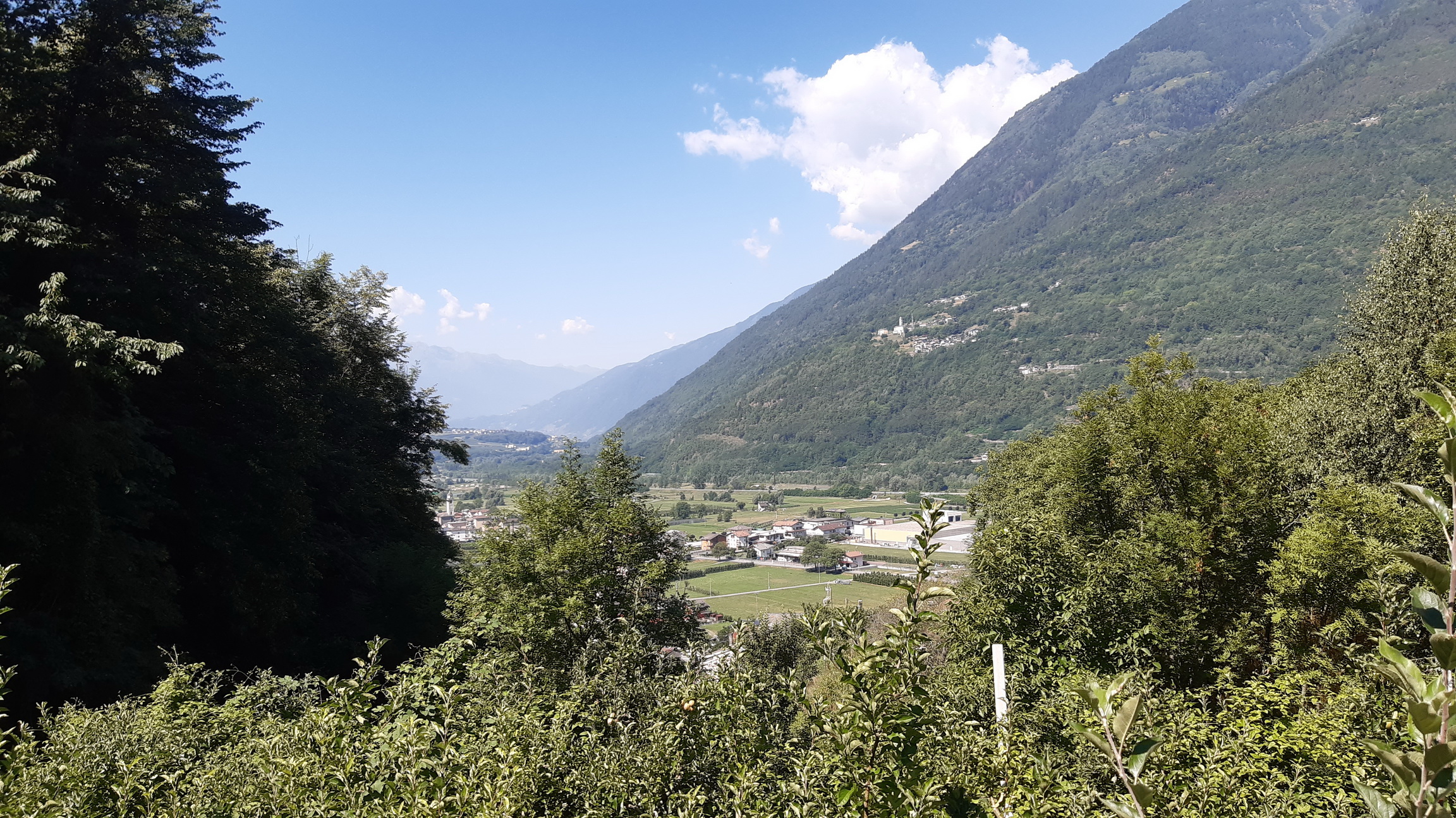 Prechádzam hlavnou ulicou, známa zmrzlináreň ešte zavretá. Odbočujem na známy asfaltový cyklochodník vedúci celou Valtellinou a začínam šliapať v smere na Bormio. Na chodníku je fajn, žiadna premávka. Tovo di San Agatha a už prichádzam do dedinky Mazzo di Valtellina kde sa začína stúpanie na Mortirolo.