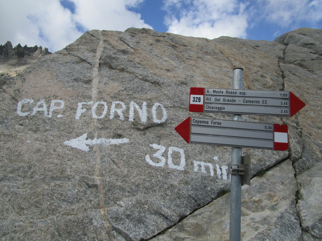 Z túry s kamarátmi na Monte Forno sauž vrátila aj chatárka Alena. Vždy sa poteším keď mám do činenia s chatármi ktorí si vedia nájsť čas na túry v okolí svojej chaty... Máme sa o čom rozprávať... Okrem iného sa od Beata dozvedám aj pre mňa prekvapujúce info: aby spojazdnil môj dnešný okruh tak vyznačil aj tú červenú značku na talianskej strane... tak po partizánsky... vypytuje sa ma ako som išiel a či som nemal problém s orientáciou. Hovorí, že to ešte zlepší aby ľudia trafili aj v hmle...