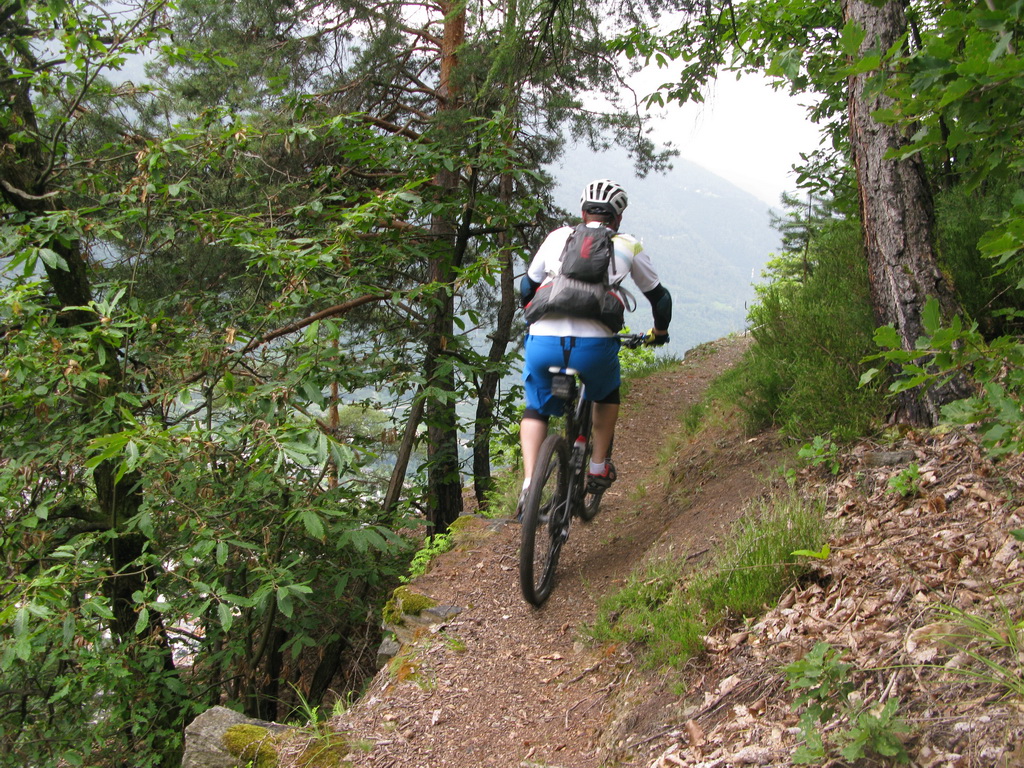 Nás dnes však poteší aj zjazd do Tirana z odbočky nad chatou Schiazzera. Čaká nás vyše 1700 výškových metrov zjazdu po všetkých možných povrchoch. Počas zjazdu musíme robiť prestávky, ruky už miestami nevládzu držať brzdy :)