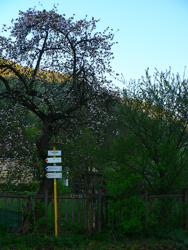 Kľučkovanie po hadovitom chodníčku ku smerovníku nechutí podľa očakávaní, ale to len nohy asi potrebujú čas na zmenu stereotypu. Veď v prehľadnom, ešte neolistenom tuneli to má ísť ľahúčko a slnko do chrbta ukazuje smer.