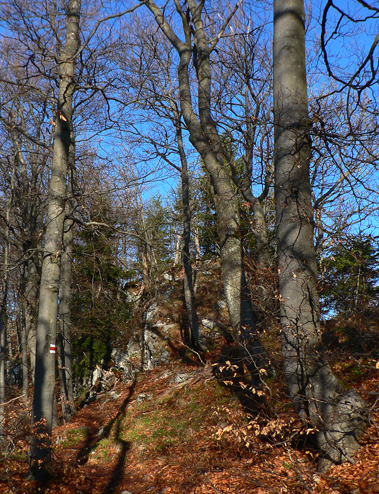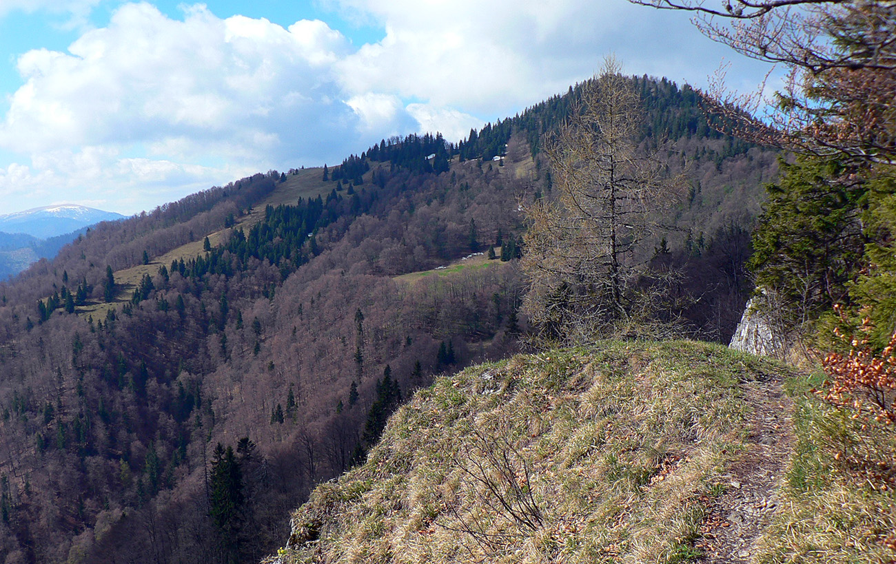 Hore sa zvodorovňujem – vystieram nohy do zamýšľaného smeru, nech si uvedomia, kam pôjdu ďalej, ale nechcú to vziať na vedomie. Tak aspoň panorámy (kým totálne stuhnuté súhlasia s ďalším pohybom): cez Katovu skalu k Martinu a Holiam, cez zákal protislnka k Ploskej so zvyškami bielej glazúry. Každým smerom bijú do očí „prírode blízko obhospodarované“ svahy národného parku a jeho okolia.