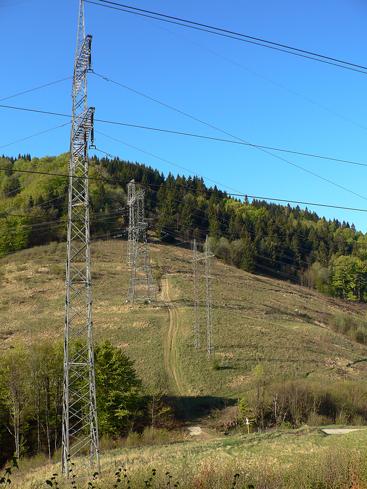 Strmý zbeh zľahka brzdený, rosy málo a tráva nízka, v lese hlina tak akurát pokropená, pár výhľadov cez okná rúbaní do Turca a už sú tu bzučiace pavučiny vyholenej a zadrôtovanej jazvy Ľubochnianskeho sedla.