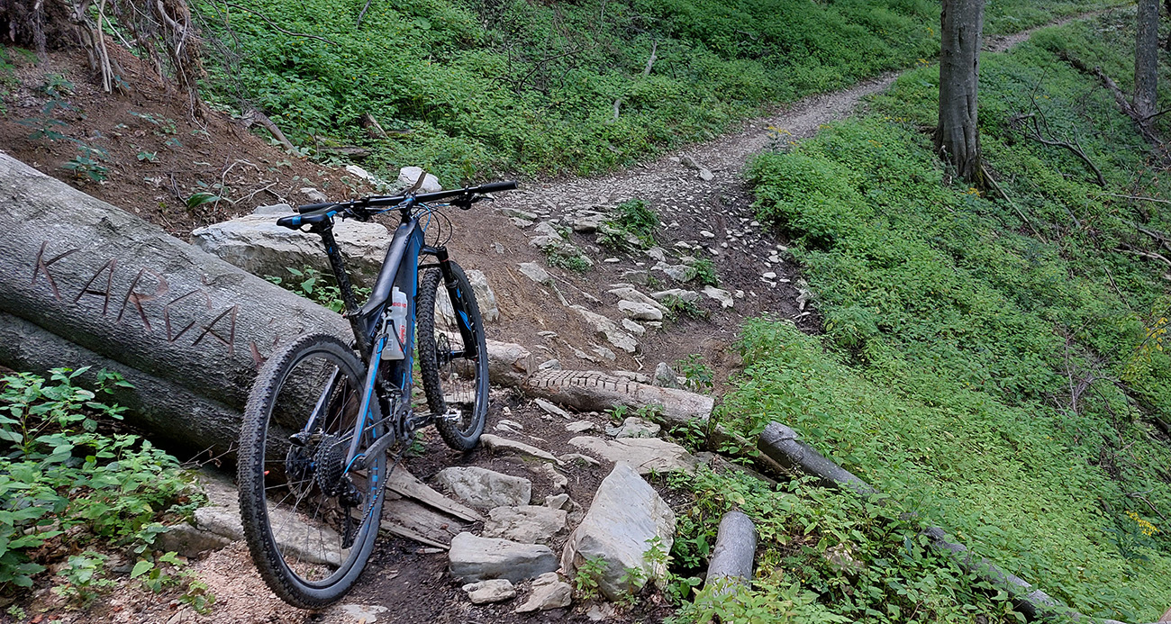 Traverz bol parádne preleštený účastníkmi Donovalského drapáku spred pár dní, ani taký veľmi blatnatý nebol, ako som ho mal zafixovaný. Najtechnickejšie to bolo po výjazde z lesa, kde je úzkosť chodníka kombinovaná s priečnymi koreňmi a vedie zarastajúcim okrajom lúky. Našťastie tam už sucho bolo. Cez Kečku potom samozrejme komfortný, hladký singlík na oddych aj na výhľady. Jeho úplný opak na záver - známy „bralnatý“ zošup k útulni som samozrejme zišiel na istotu popri bajku.