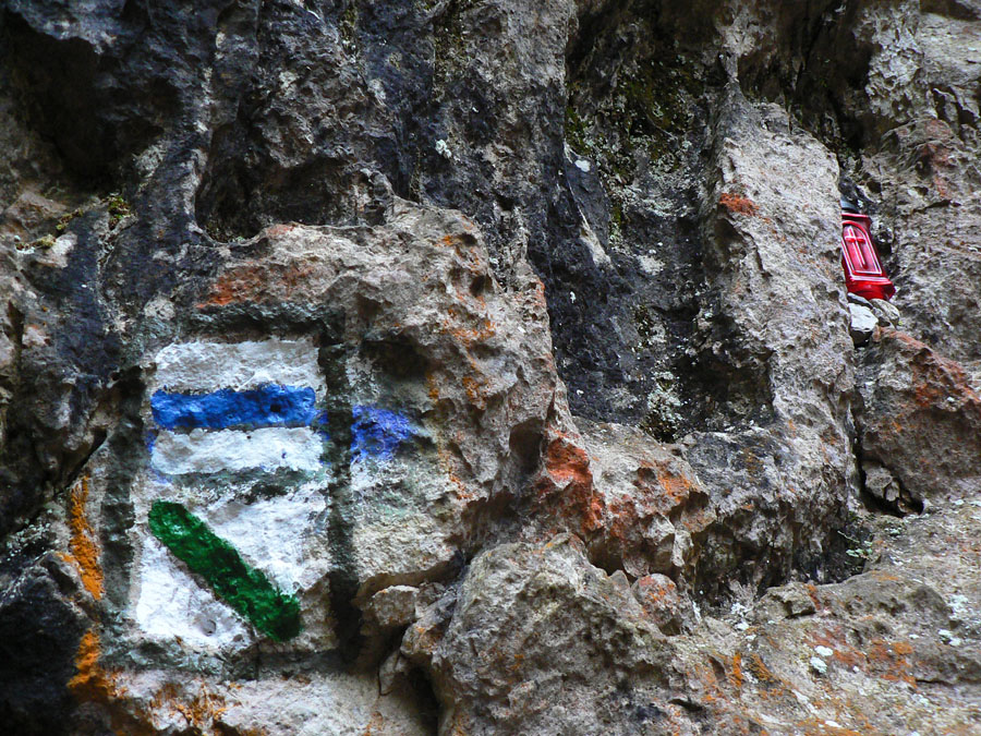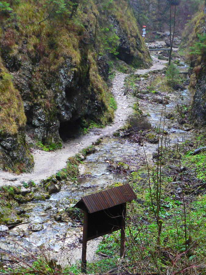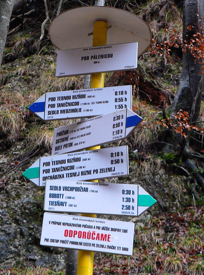 Rovnako aj smerom dole, po zelenej. Na to som sa zvlášť tešil, lebo tade som ešte nešiel. Takže som si užil najskôr pár stoviek metrov „zlaňovania“ po reťaziach (sutina alebo klzký vápenec ako smerom hore z druhej strany) a následný strmý zostup lesom do osady Podrozsutec. Potom už len posledný úsek zablatenými lúkami a lesmi, nazad k parkovisku pri hoteli, odkiaľ som ráno vyrazil.
