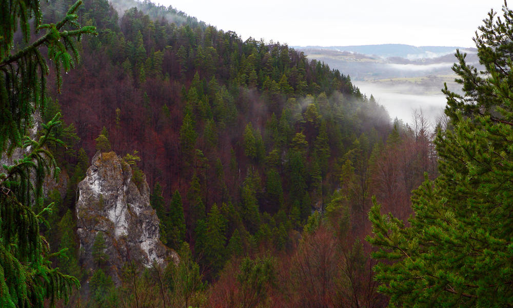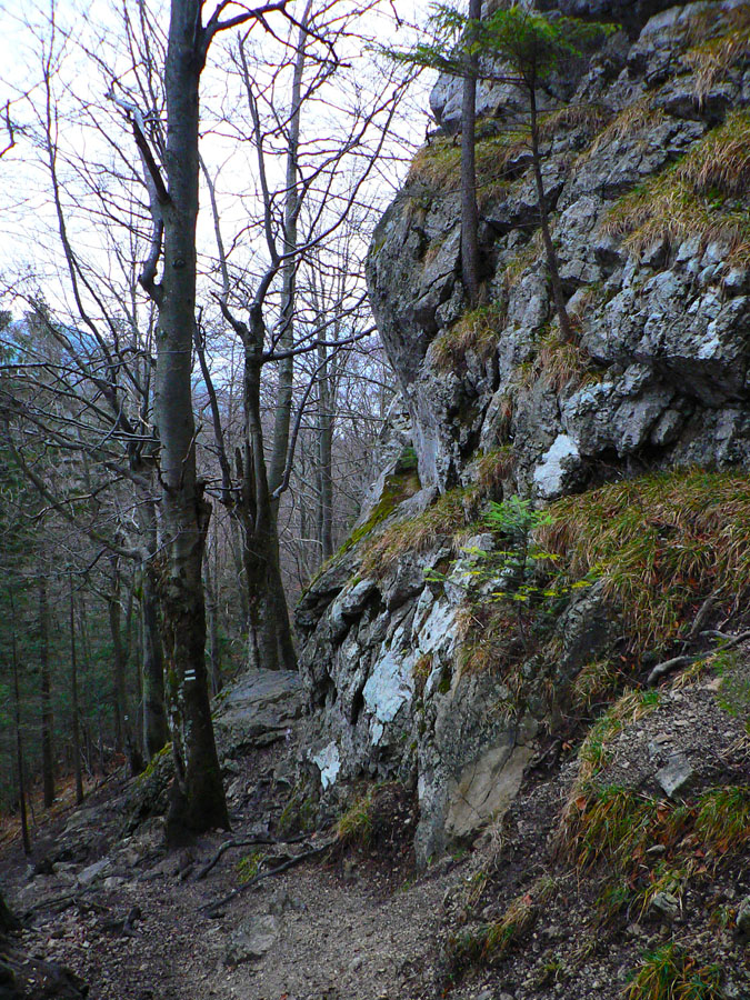 Počasie na mikulášsku sobotu vyšlo takmer ideálne hnusné: s občasným dažďom a hrebeňmi hôr v mrakoch, so zdrapmi hmiel v dolinách a s teplotou málo nad nulou. Aspoň že nefúkalo. Ale v tiesňavách pod Rozsutcom je pekne, aj keď je škaredo :-) Navyše v takomto počasí tam človek nestretne ani nohu, čo je vzácna príležitosť vychutnať si prírodu bez uhýbania, posúvania v rade - a najmä v tichu. A pre niekoho aj príležitosť zaexperimentovať si v pokoji so samospúšťou a manuálnym nastavením expozície pri fotení. Dosť užitočné pri slabom svetle, aké v „Dierach“ väčšinou panuje - a v decembrovom šere zvlášť :-) Takže som začal z Bieleho potoka od hotela, s plánom užiť si a presnoriť všetky tiesňavy. Na začiatok som prešiel po modrej Dolnými dierami na Podžiar a zišiel som nazad, ale už len k rázcestiu Ostrvné. To bola dobrá rozcvička s malým stúpaním, atraktívnymi úzkymi kaňonmi a keď tam nikoho niet, nie je problém prejsť to v oboch smeroch. V lete sú práve tu najväčšie „zápchy“, lebo ľudia chodia húfne z Bieleho potoka aj z opačnej strany, zo Štefanovej.