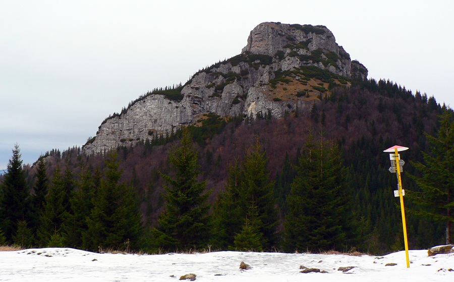 Potom ma už chodník „vypľul“ v sedle medzi Rozsutcami. Kým Veľký Rozsutec bol zahalený v mraku, malý pyšne dominoval okoliu. Presne to som potreboval. Krátky presun po lúkach a o chvíľu už som „feratoval“ po reťaziach na vrchol. Výhľady samozrejme nič moc, svetlo biedne, krajina do šeda, ale mraky dostatočne vysoko a to bralo a cesta naň stojí za to v každom počasí.