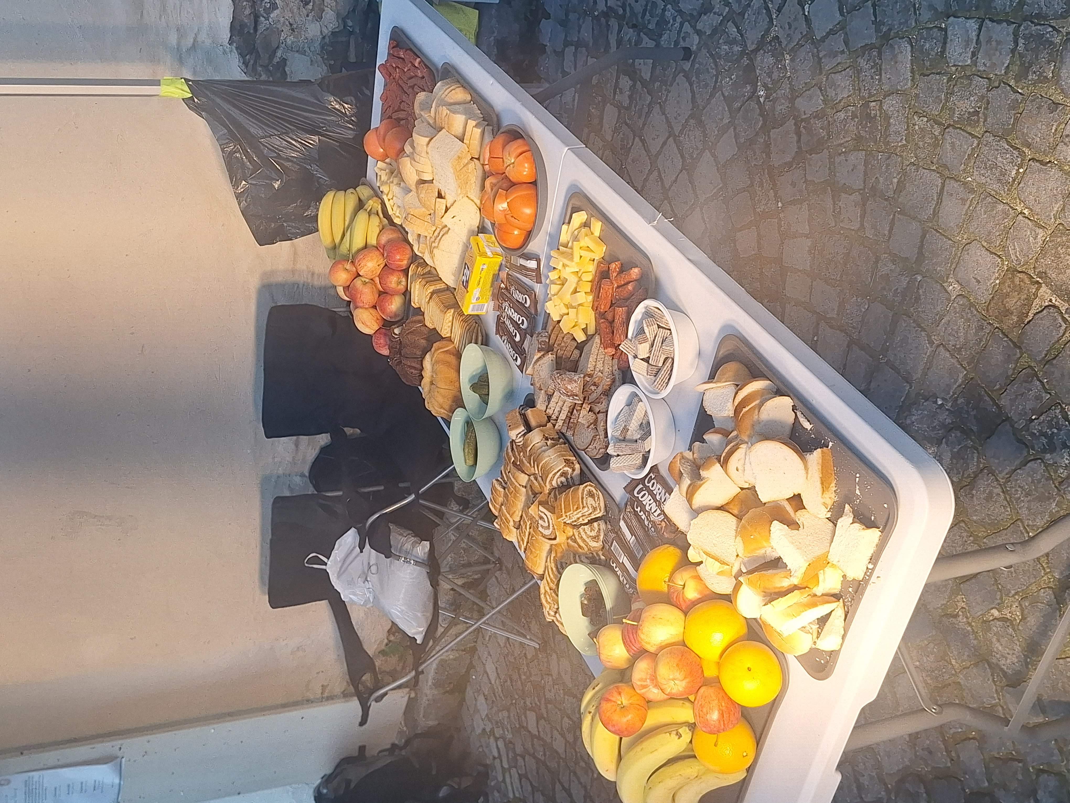Na občerstvovačkách nájdete väčšinu potrebného, ale sú pripravované skôr pre chodcov. Soľ a magnézium si teda vezmite so sebou. Chlieb – niekedy s nátierkou –, narezaný syr, klobásky, bábovky, či keksíky boli k dispozícii. Teplé jedlo bolo, žiaľ, iba na dvoch zo štyroch občerstvovačiek na mojej trase. Na prvej iste výborný tekvicový krém, ktorý mi po 8 km ale bol ešte priskoro. A potom až na poslednej, 11 km pred cieľom, klasický vývar (rozumej z bujónu, v Rakúsku polievky silnú tradíciu nemajú). Ale spravil dobre.