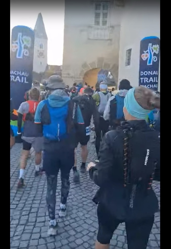 No ale k samotnému priebehu. Podujatia sa môžu zúčastniť turisti, ako aj bežci, a ponúka mnoho dĺžok, v roku 2025 konkrétne 101,77,56,35,24 a 10 kilometrov. Štart je pre každú z týchto kategórií odlišný miestom i časom. Moja trať Wachau56 začínala o ôsmej ráno v mestečku Spitz an der Donau. Všetky trasy končia v centre regiónu Wachau, meste Krems. Štart kategórií je načasovaný tak, aby účastníci do cieľa prichádzali v neskoré sobotné popoludnie, resp. večer. Cieľ sa uzatváral o 22:00.
