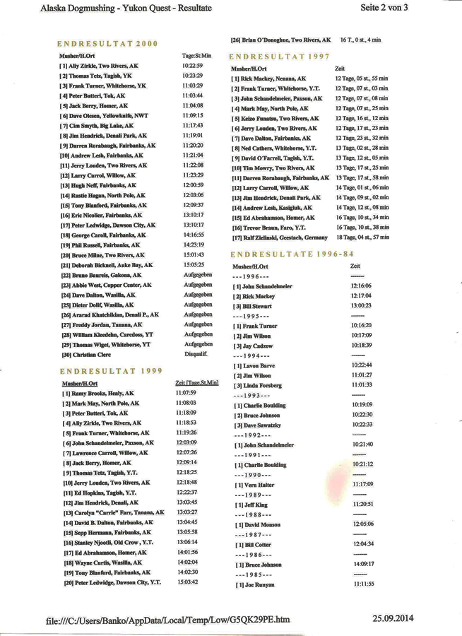 Touto krátkou históriou pretekov som chcel čitateľom len priblížiť, čo by na takej dlhej a mimoriadne namáhavej trati musel Vlado prekonávať a zažiť. A že tam skúsenosti znamenajú viac ako samotná telesná príprava. Ale kto si chce plniť svoje sny, musí ich skúšať aj praktikovať. Pretože Vladovi sa to za života už nepodarilo, priblížime jeho veľký sen verejnosti aspoň týmto príspevkom. Slováci, priatelia tohto športu, napíšte sem aj vaše zážitky s vašimi psami na pretekoch!