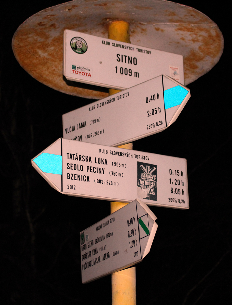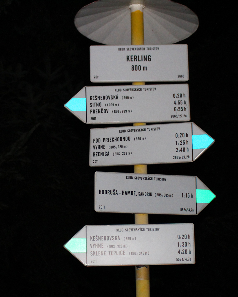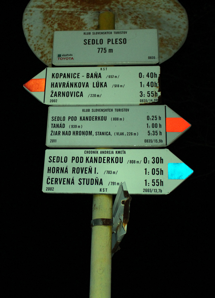 Po Rudnej pokračujem, prejdem asfaltovú časť a už som v lese, kde ma pozoruje ohromujúce množstvo párov očí. Prebehol som až na sedlo Peciny, na Richňavských som netrafil odbočku, tak ďalej po modrej na Sitno, hore akurát o polnoci. Toto miesto má svoje čaro, tak posedím, najem sa ,ale aj keď je extra teplá noc, hore fúka. Dojedám v závetrí.