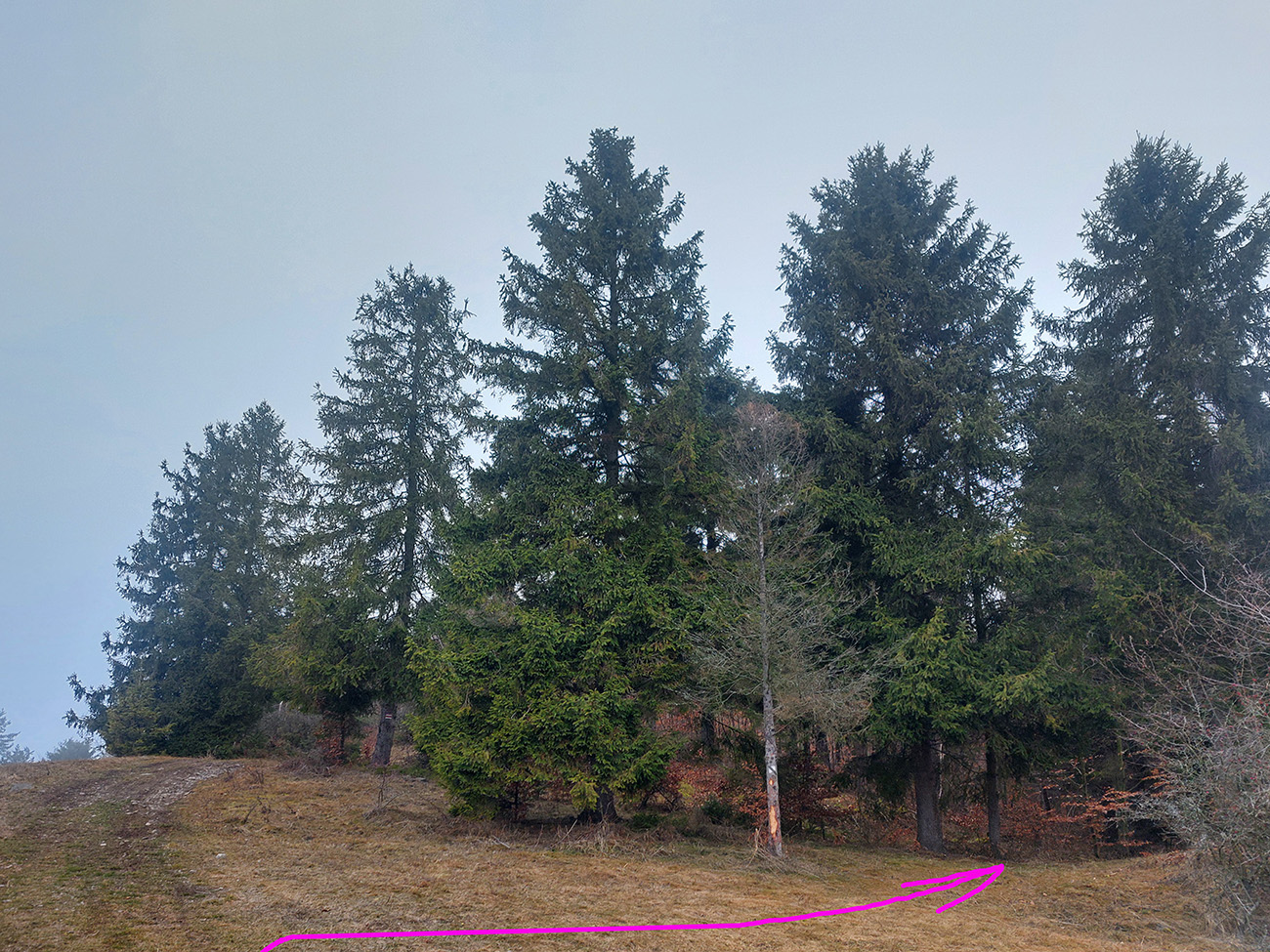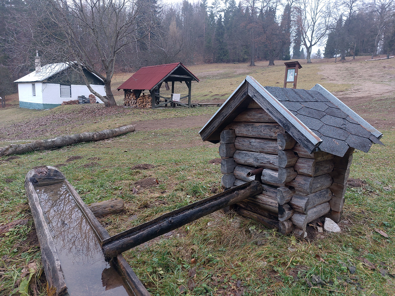 Ešte som sa snažil obísť Jaseň po náučnom chodníku, či ma nezavedie ku tej spomínanej štôlni. No chodník aj jeho značky sa stratili na lúke, tak som to vzdal. Ale cestou cez lúky, dole do Matejoviec, sa mi podarilo vyhnúť najväčšiemu blatu a nadriapať trochu borovicovej čečiny z tých pováľaných stromov, tak spokojnosť aj so záverom výletu, a že bude matroš aj na vianočnú výzdobu :-)