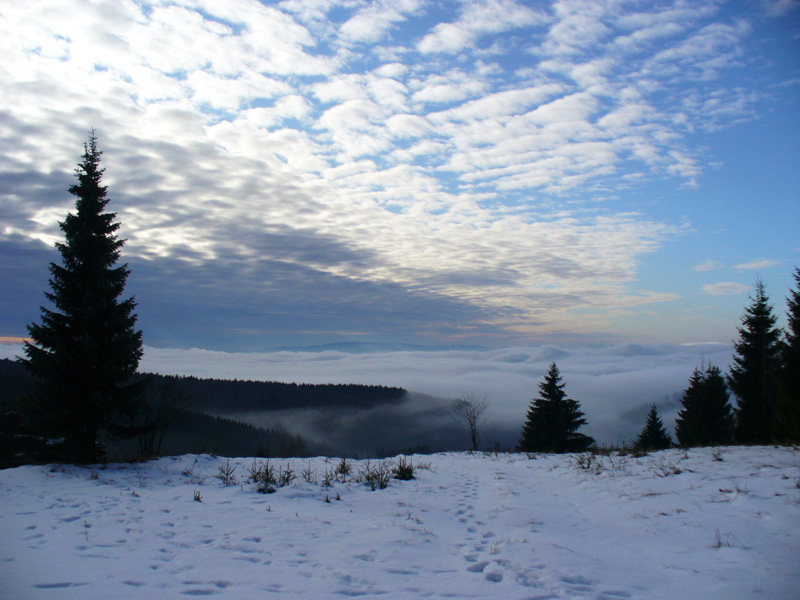 Kalendár pripomína 3. január a je preto najvyšší čas vybehnúť niekam do hôr. Rozhodnutie nakoniec padlo na moje obľúbené Veporské vrchy, na ich juhozápadnú časť – Sihliansku planinu. Aj keď tieto končiny už mám pochodené celkom slušne, v zime je to predsa o niečom inom. Predpoveď počasia sľubuje príjemné inverzné počasie. Cestou Zvolenskou kotlinou od Zvolena až po Hriňovú vládne všade naokolo hustá hmla. Dúfam, že v nadmorskej výške nad 900 m n. m. budem mať nádej aj na slnečné lúče. Počasie nesklamalo a už za Detvianskou Hutou sa hmla začala pretrhávať. Vystupujem v sedle Prašivá (961 m n. m.) a pekný deň sa môže začať...