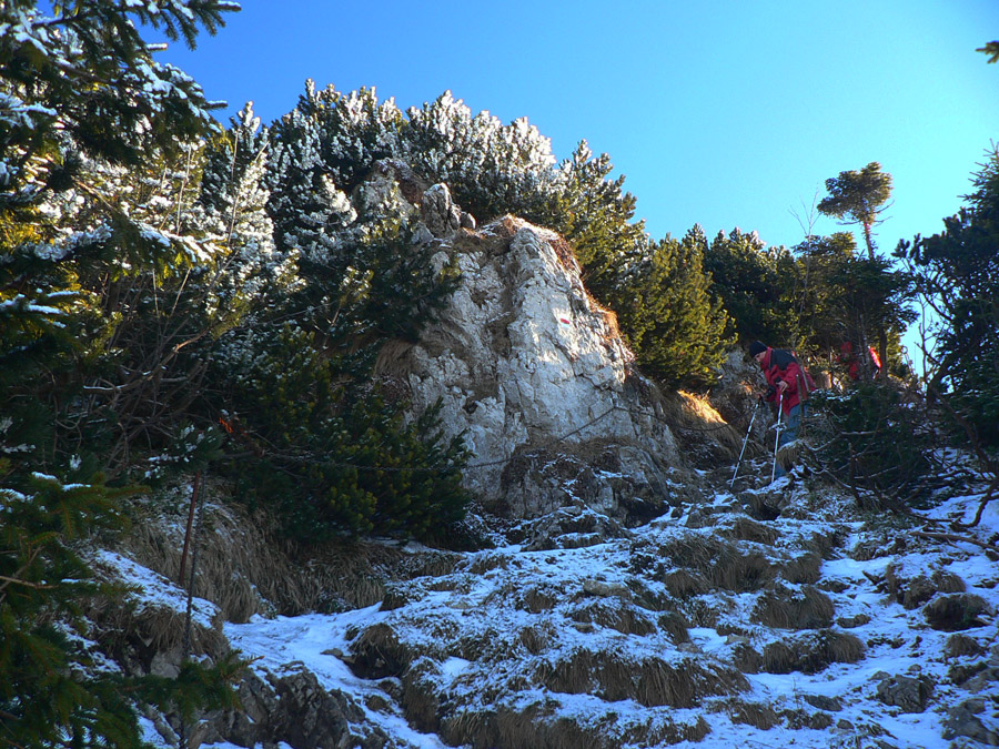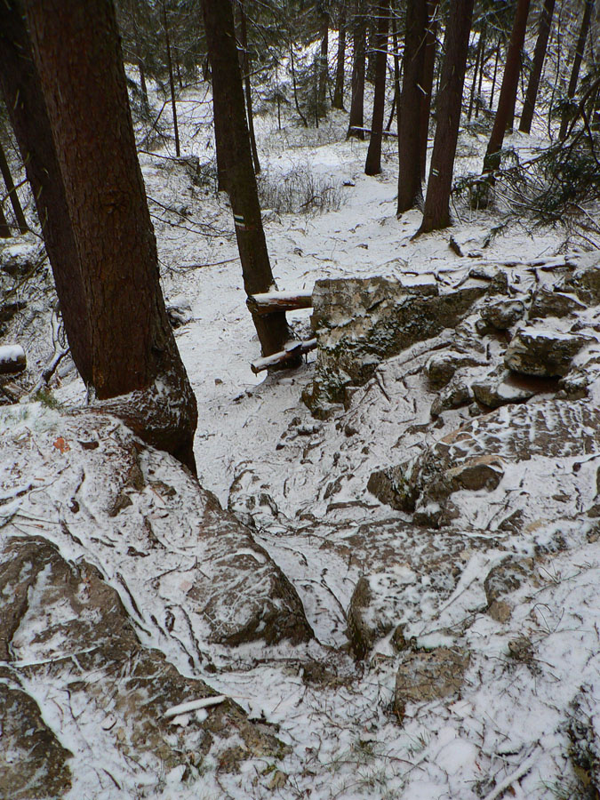 Po Drapáčom začína „chodník do civilizácie“ padať riadne prudko a sem-tam aj pomedzi skaly. Tie kým zapadli popraškom snehu, najskôr na ne napršalo, takže riadne rodeo! A strmé je to fest! Až po ďalší smerovník na lúke Zásadce. Odtiaľ už len potkýnanie po zvážnici až do Vyšného Kubína. Pod lesom síce pekné výhľady do ďaleka, ale pod nohami kvalitne zamiesené „vetrieskovo-traktorové“ blatko, aktuálne zamrznuté na kameň, takže výborne potkýnavé. Za mokra tadeto? No vďaka...