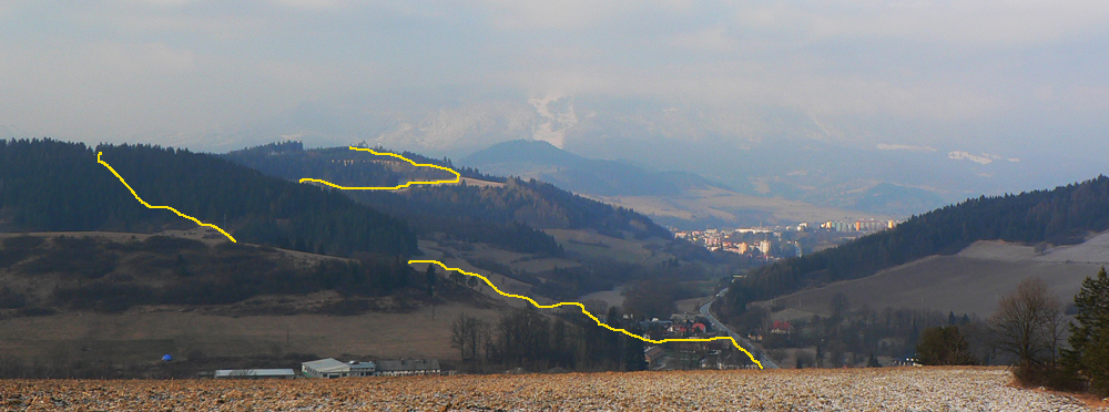 Jasné že z Vyšného nejde nič, keď mi treba, takže daváj do Dolného na vlak :-) S tým som rátal, mám ešte skoro dve hodiny :-) Takže žiadne hltanie splodín popri hlavnej, pekne improvizačne sa ide, cez Kuzmínovo a po zjazdovke (bývalej) do centra. Lúky pod lesom sú na to ideálne a keď treba, vysielač vidno. Odporúčam, smer je asi jasný, lebo som nedokázal zablúdiť :-) Celé aj s touto záverečnou vsuvkou a asi polhodinkovým pobehovaním po vrchole Choča mi trvalo asi 7 hodín, takže ideál na krátke zimné dni.