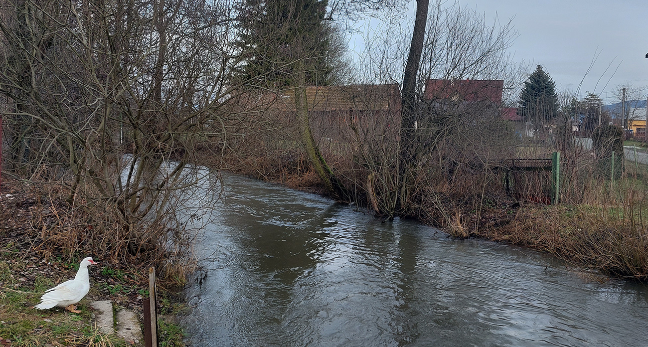 V Dubovom minerálka by sa nabrať dala, ale len v gumákoch. Tak som to stočil po cyklotrase smer Požehy, kde moje krikľavožlté FIANDRE CABRIO vyvolalo poplach medzi desiatkami volaviek, okupujúcich brehy rybníkov. Kým som vytiahol mobil, už boli všetky zaparkované za stromami pri Turci. Za mostíkom cez rieku už asi tretí parádny brod - ešte že viem, že je pod hladinou asfalt, ale trochu ma aj tak vytriaslo. Našťastie nenamočilo, len kolesá umylo. Naokolo divočina ako v Amazónii, len bez zelenej farby.